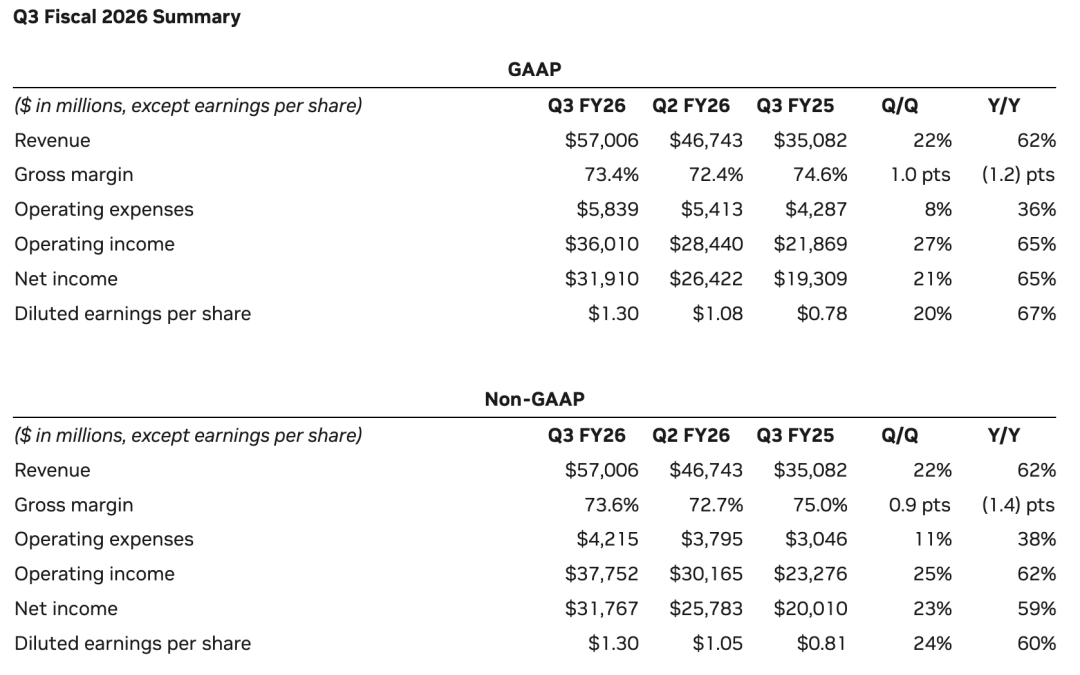 美股盘后,英伟达发布超预期财报,2026财年第三财季营收达到创纪录的570亿美元,同比增长62%。